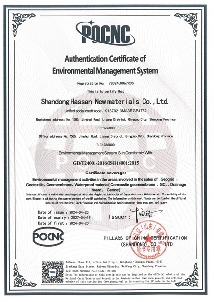 Стандарт:CE Номер:IT031416TH170824 Дата выдачи:2017-08-24 Дата истечения срока действия:2022-08-23 Область / Диапазон:Geotextile |